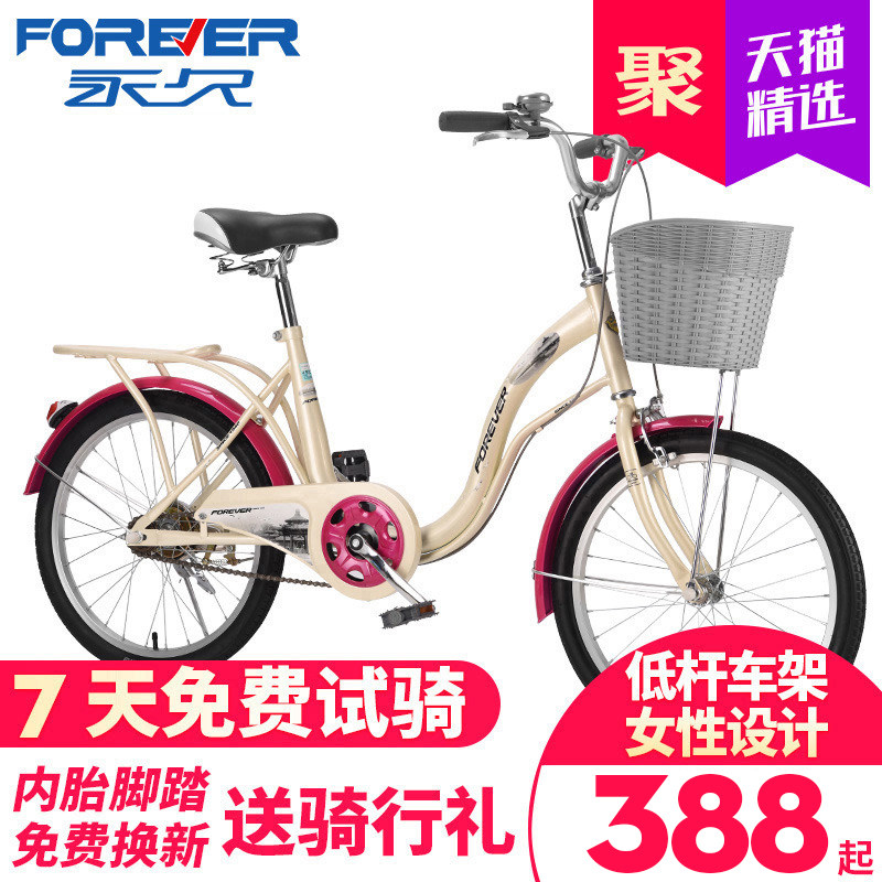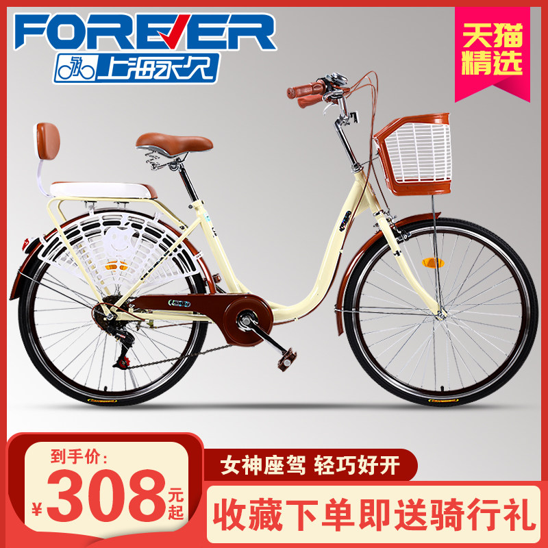 永久 Forever 自行车女式老款代步通勤高碳钢车架双人轻便普通城市单车男士成人中小学生接送孩子芭蕾 复古黄寸 旗舰版 图片价格品牌报价 京东