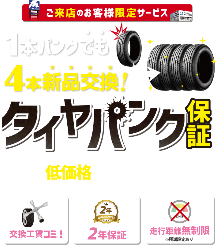 タイヤパンク保証 カーポートマルゼン アルミホイールとタイヤの専門店